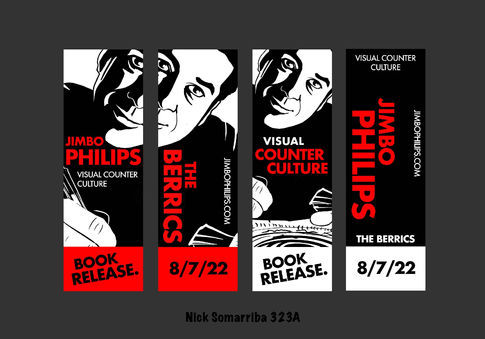 This concept centers around Jimbo Phillips, the artist known for his iconic Santa Cruz surf and skate graphics. The objective was to design a book cover that captures his distinctive artwork and its impact on surf and skate culture, along with a promotional campaign to advertise and sell the book at a live event.